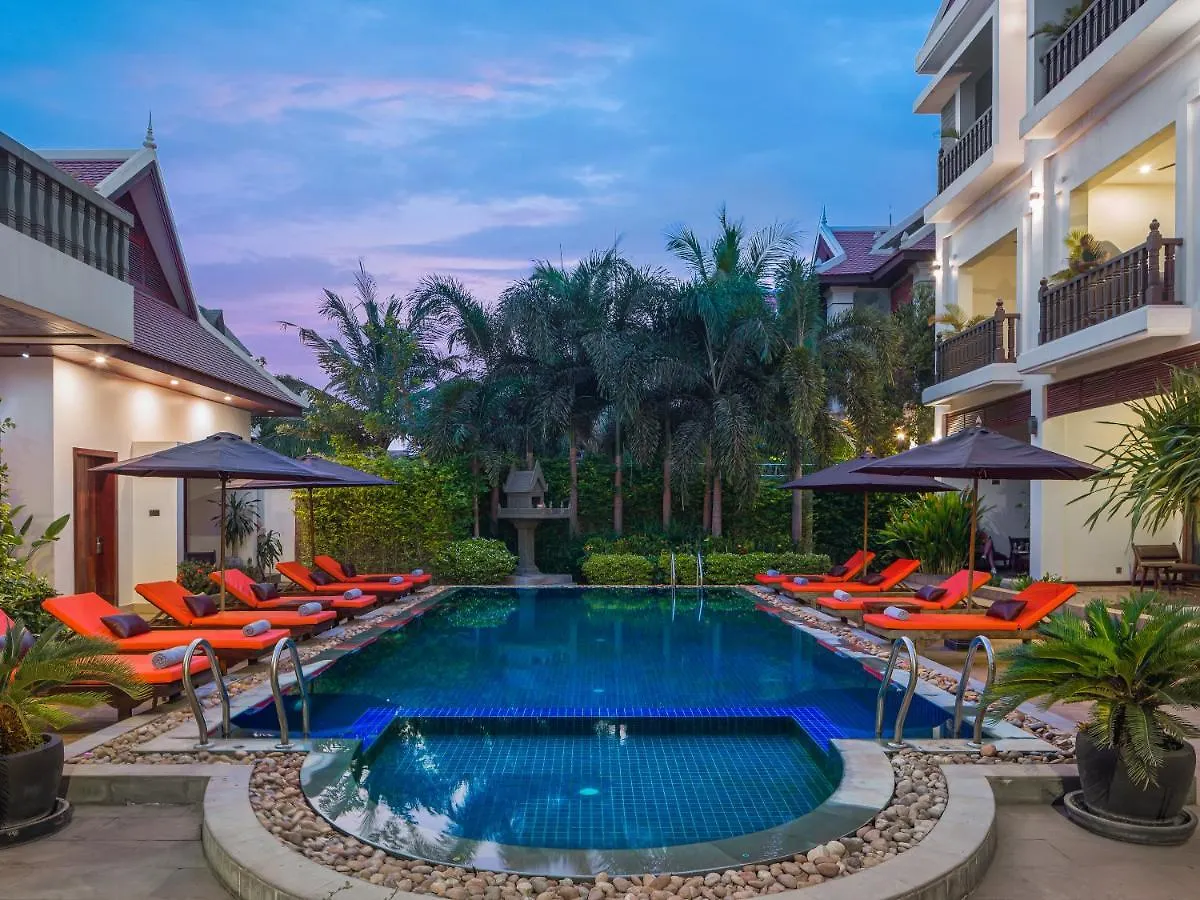 4つ星Deva Angkor Residence シェムリアップホテルはシェムリアップに位置し、カンボジアン カルチュラル ヴィレッジから徒歩で25分くらいです。プールを提供しています。 駐車場もあります。